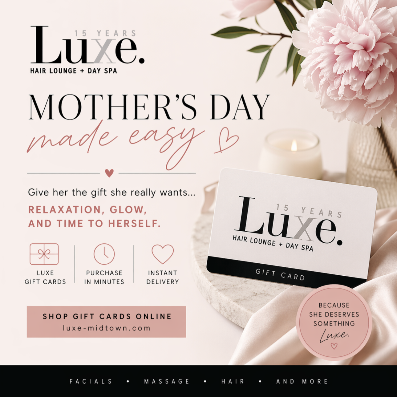 Our talented team brings over 15 years of experience to every appointment, ensuring you receive the highest standard of care and attention. At Luxe Hair Lounge & Day Spa, we understand that your time is precious. That's why we've made it easier than ever to book your appointments with our online booking system.